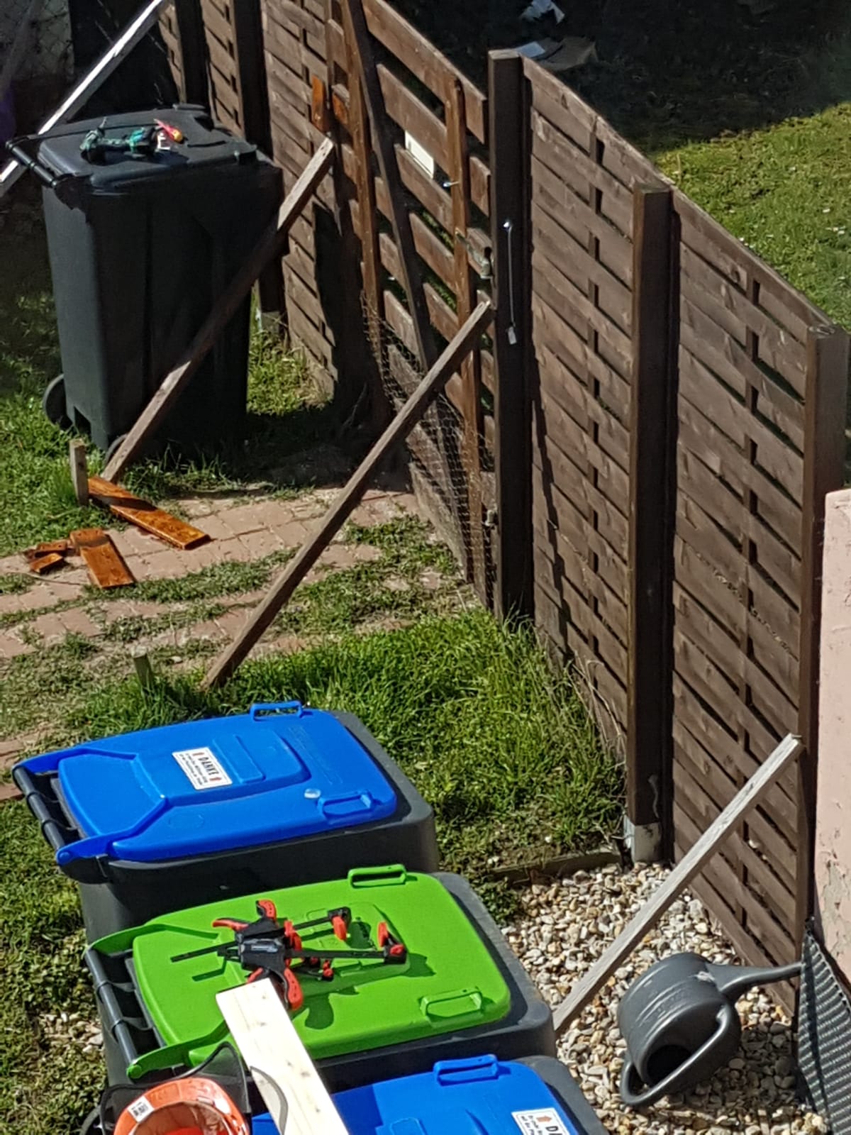 …hat meinen Gartenzaun umgepustet. Naja, zumindest fast. Der Zaun soll in ein paar Jahren wieder weg, weshalb ich darauf verzichtet habe die Pfosten einzubetonieren. Ich habe Einschlaghülsen genommen, da ich später keine Betonfundamente ausgraben möchte.
