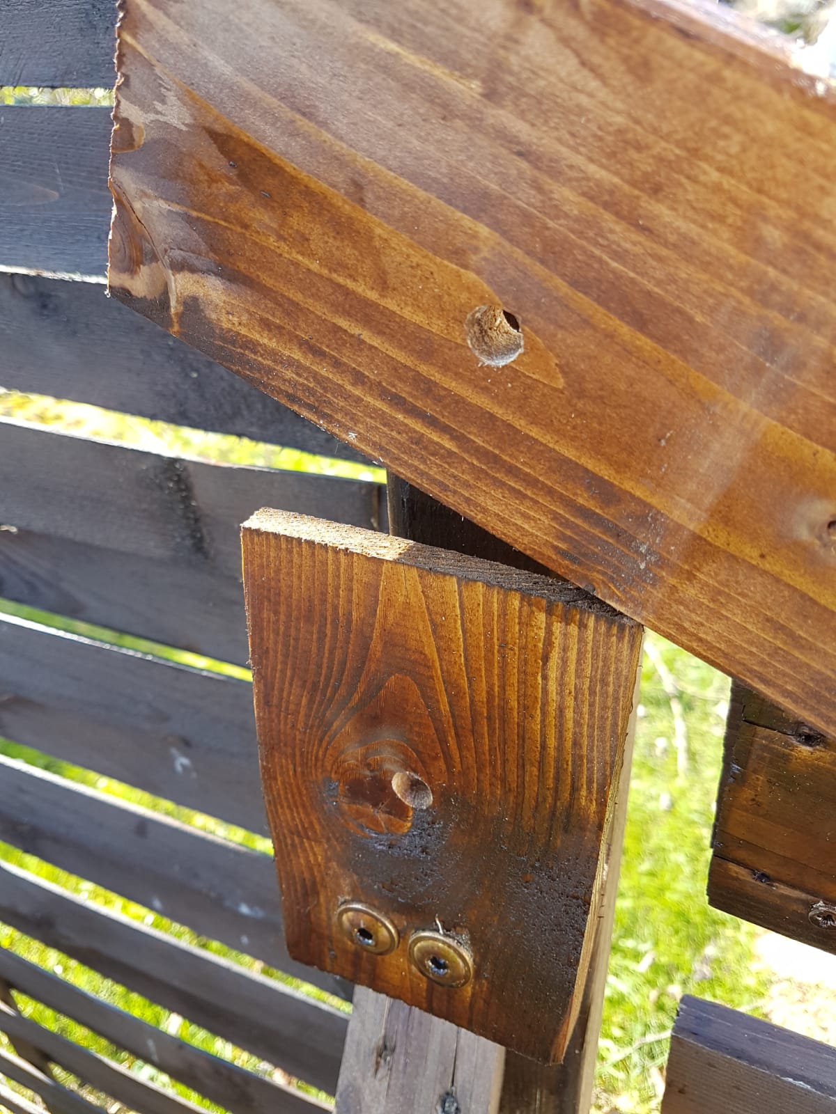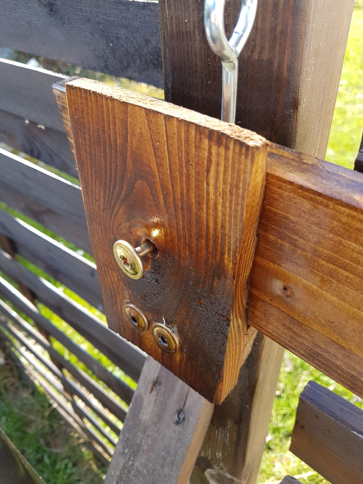 Aus ein paar Schrauben und Brettern entstand so ein Riegel für das Gartentor, der verhindert, dass selbst bei starkem Wind das Tor von selbst aufgeht.