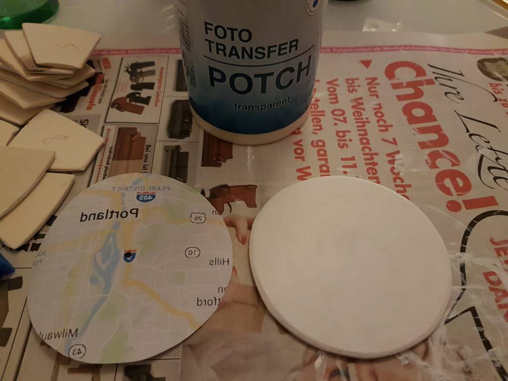Nachdem alles weiß lackiert ist, geht es weiter mit der Übertragung des Motivs. Ich benutze dazu Foto Transfer Potch (Amazon Affiliate Link. Du unterstützt diesen Blog, ohne dass es dich mehr kostet).