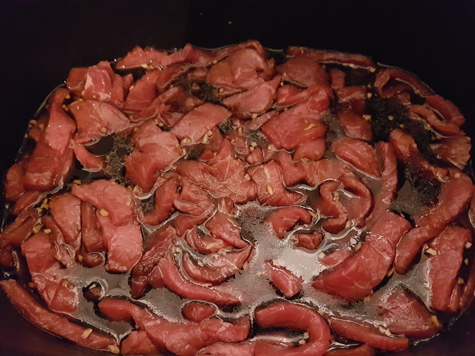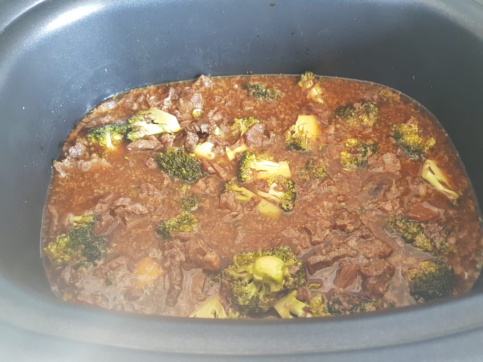 Das Rindfleisch in Streifen schneiden. Alle Zutaten bis auf die Maisstärke und den Brokkoli in den Slow Cooker geben.