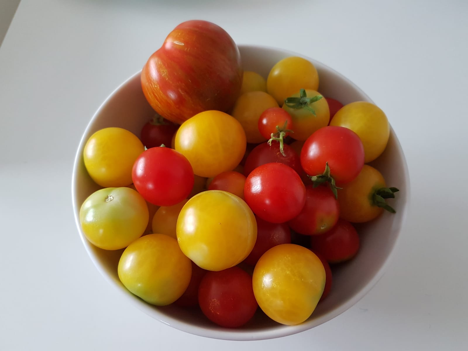 Seit heute sind wir wieder da und haben von den beiden Sträuchern die ersten 15 Tomaten geerntet.