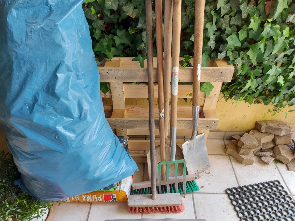 Ich hab hier noch 3 Paletten rumstehen und überlege gerade, was daraus entsteht. Vermutlich ein mobiler Werktisch für draußen, vielleicht in etwa so: