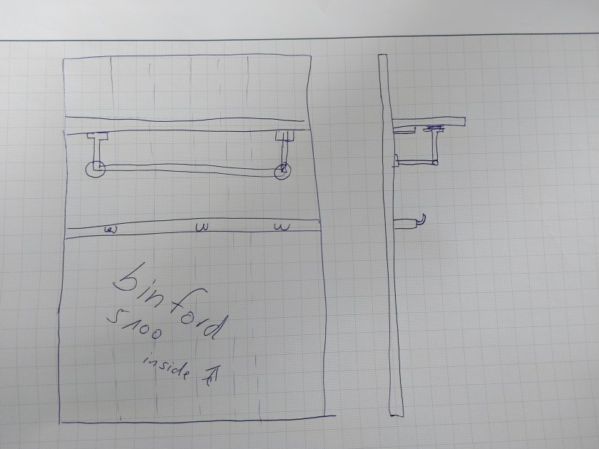 Die Haken sollen an den mittleren Steg, oben plane ich eine Stange für Kleiderbügel. Dazu müsste die Hutablage aber tief genug sein, mal sehen ob das wirkt.