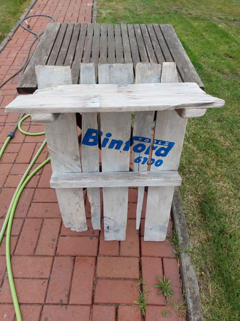 In die Zwischenräume habe ich noch 2 weitere kaputte Bretter geschraubt.